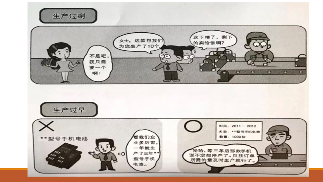 拿一个女士来买包包来说,这个女士其实只要一个,但是我们产线一下子做了10个,多余的9个是什么?是我们多的,就只能放在我们库存里,那就是生产过剩;再拿一个手机手机说,一下做了三年的量,但是这个手机更新迭代特别快,到时候可能就报废了,所以这种产生的风险会增大很多。