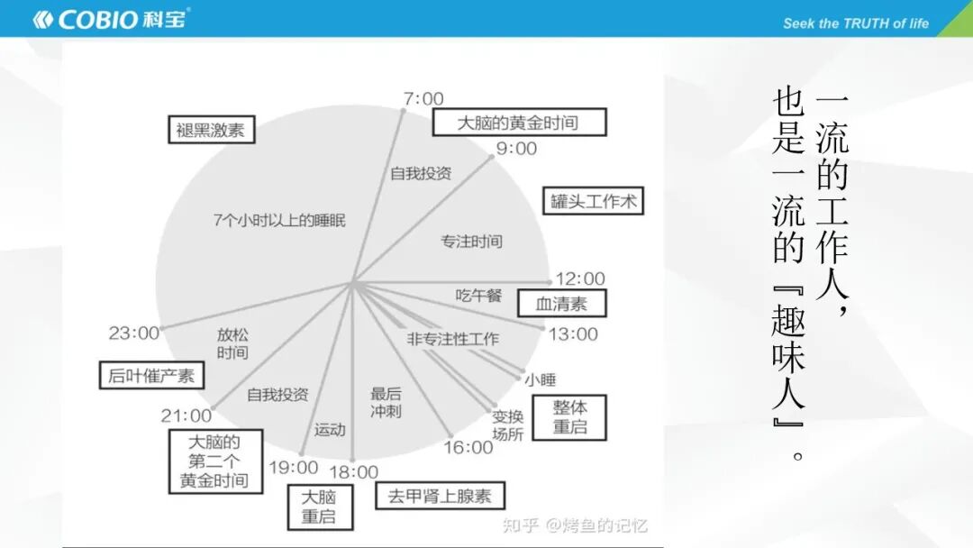 我们应该珍惜自己从事兴趣爱好的时间、娱乐的时间、和家人在一起的时间,有意识地放松自己。每天白天努力工作,晚上彻底恢复,保证充足的睡眠时间,配合定期运动。只有这样,才能在工作中将大脑的机能发挥到最大值,周而复始地进入一个螺旋上升的正循环。