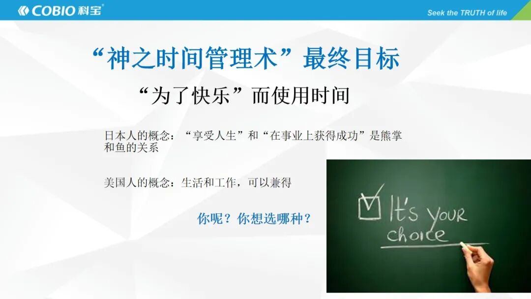总之,“神之管理术”的最终目标是“为了快乐”而使用时间。他觉得生活和工作可以兼得,即可以成为一流的工作人,也应该是一流的趣味人。为工作努力是件好事,但单凭恒心和毅力等精神层面的鸡血支撑,不管怎么拼命,也不能提高专注力,这样必定造成工作效率低下,结果不得不延长工作时间而牺牲自由时间来弥补。