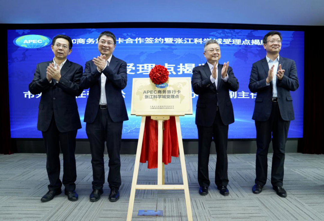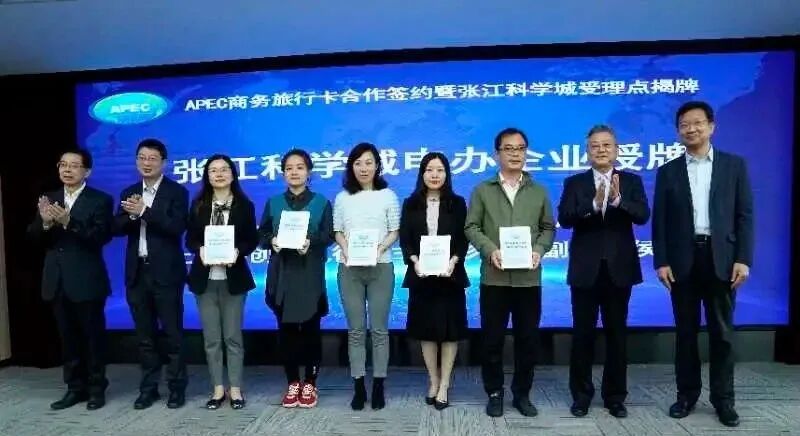 10月21日下午,上海市外办和上海科创办在张江科学城联合举行“APEC商务旅行卡张江科学城受理点揭牌仪式”。这是上海市外办和上海科创办助推上海加快建设具有全球影响力的科创中心、服务全市高新区创新创业的具体举措,也是政府部门创新服务模式、服务前移的重要体现,更是对提高服务质量、精准服务的积极探索,对全市高新区内的企业提升创新创业能力、加大国际合作、促进对外贸易具有重要的推动作用。市外办主任张小松、上海科创办执行副主任彭崧、市外办副主任周亚军、上海科创办专职副主任侯劲出席并共同为“APEC商务旅行卡张江科学城受理点”揭牌。